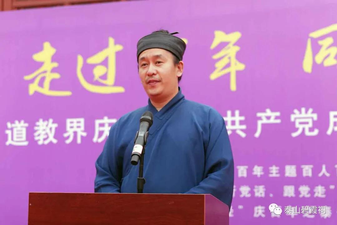 泰安市委统战部副部长、市民族宗教局局长、一级调研员张庆峰致辞,他指出,多年来,泰安道教界深入学习贯彻习近平总书记关于宗教工作重要论述和指示批示精神,坚持道教中国化方向,践行社会主义核心价值观,不断加强自身建设,主动履行社会责任,推动道教事业取得新的进展。要进一步继承和发扬道教界爱国爱教的优良传统,开展好爱党爱国爱社会主义系列主题活动,统一思想,凝聚共识,拥护党的领导,坚持同心、同向,以优异成绩庆祝中国共产党成立100周年献礼。